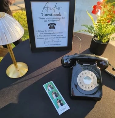 Unlock the magic of cherished memories with our audio guest book service. Record heartfelt messages that will be treasured for generations. Guests walk up to the table, pick up the receiver to hear a greeting and then they leave a personalized voice message. These messages are collected and delivered post event via email. Make your event unforgettable!